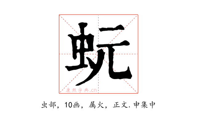 〔蚖〕字收录于《康熙字典》正文・申集中,康熙部首是虫部。