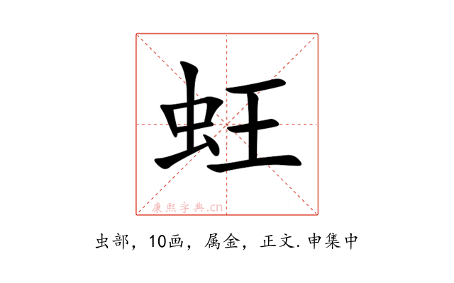 〔蚟〕字拼音是wáng,左右结构,可拆字为虫、王。