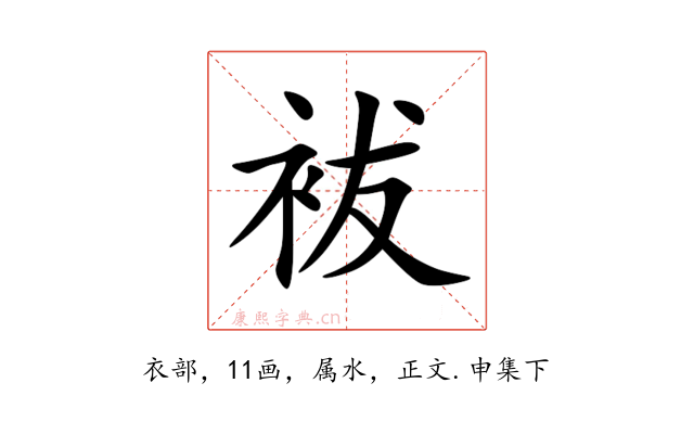 〔袚〕字收录于《康熙字典》正文・申集下,康熙部首是衣部。