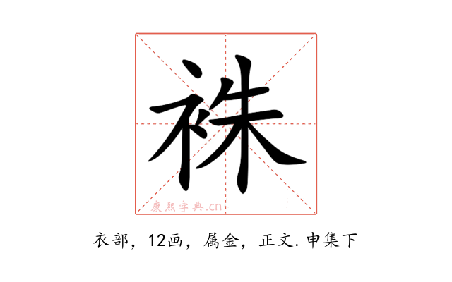 〔袾〕字收录于《康熙字典》正文・申集下,康熙部首是衣部。