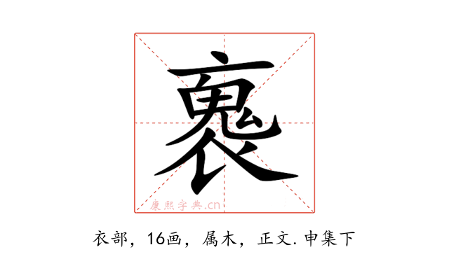 〔褢〕字收录于《康熙字典》正文・申集下,康熙部首是衣部。