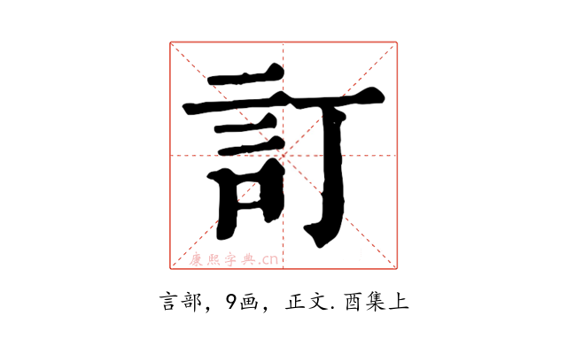 〔訂〕字收录于《康熙字典》正文・酉集上,康熙部首是言部。