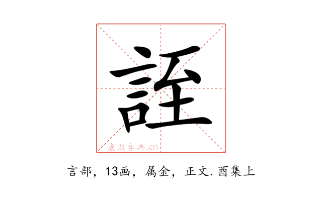〔誈〕字收录于《康熙字典》正文・酉集上,康熙部首是言部。