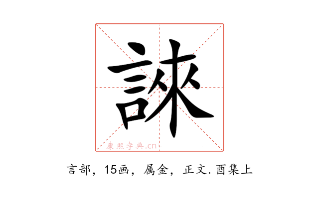 〔誺〕字收录于《康熙字典》正文・酉集上,康熙部首是言部。