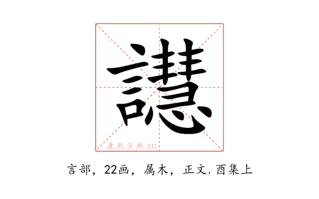 〔譿〕字收录于《康熙字典》正文・酉集上,康熙部首是言部。