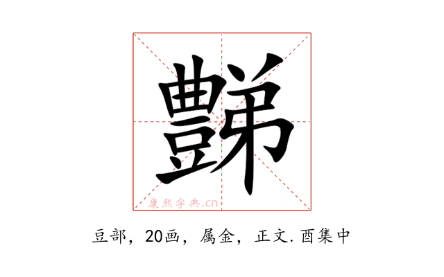 〔豑〕字收录于《康熙字典》正文・酉集中,康熙部首是豆部。