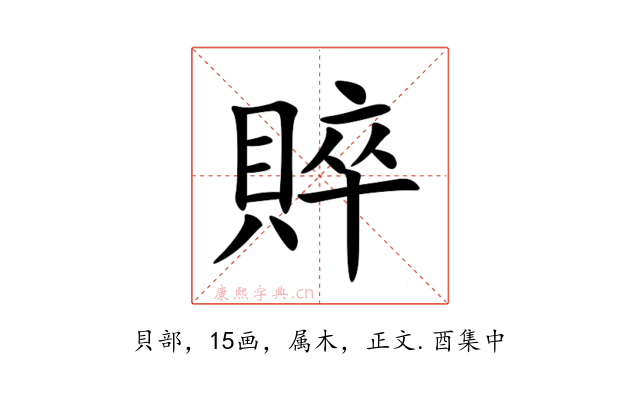 〔賥〕字收录于《康熙字典》正文・酉集中,康熙部首是貝部。