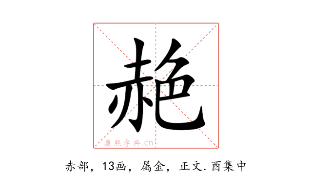 〔赩〕字收录于《康熙字典》正文・酉集中,康熙部首是赤部。