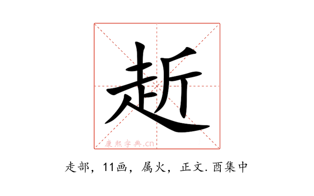 〔赾〕字收录于《康熙字典》正文・酉集中,康熙部首是走部。