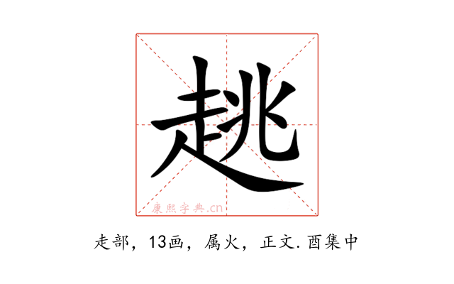 〔趒〕字收录于《康熙字典》正文・酉集中,康熙部首是走部。