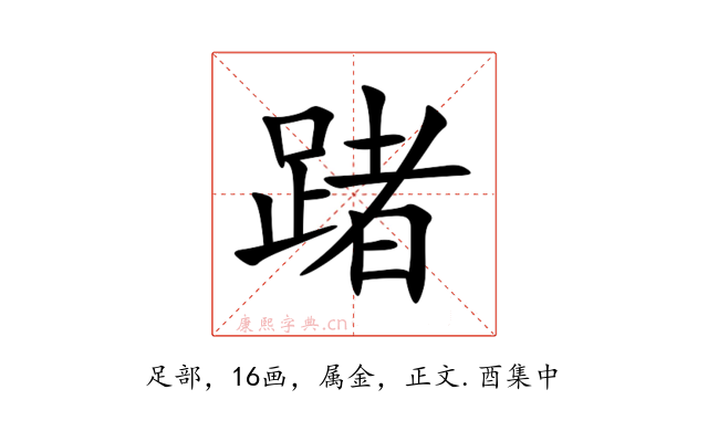 〔踷〕字收录于《康熙字典》正文・酉集中,康熙部首是足部。