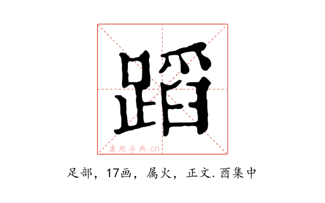 〔蹈〕字收录于《康熙字典》正文・酉集中,康熙部首是足部。