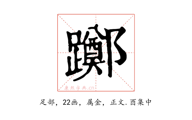 〔躑〕字收录于《康熙字典》正文・酉集中,康熙部首是足部。