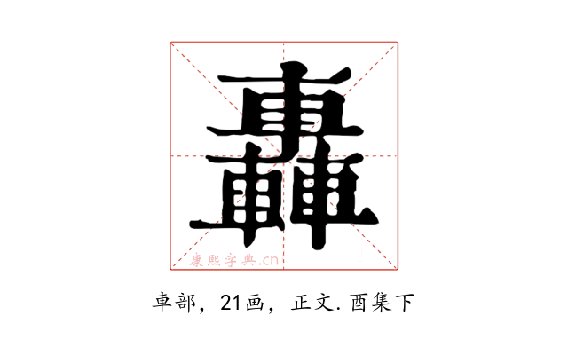 〔轟〕字收录于《康熙字典》正文・酉集下,康熙部首是車部。