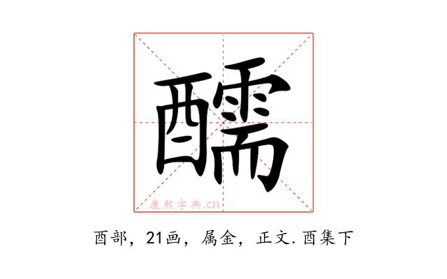 〔醹〕字拼音是rú,左右结构,可拆字为酉、需。