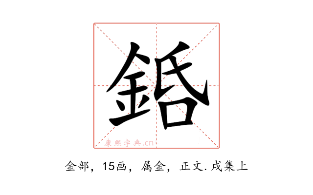 〔銽〕字收录于《康熙字典》正文・戌集上,康熙部首是金部。