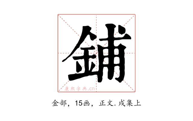 〔鋪〕字收录于《康熙字典》正文・戌集上,康熙部首是金部。
