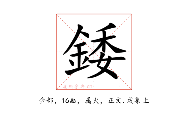 〔錗〕字收录于《康熙字典》正文・戌集上,康熙部首是金部。