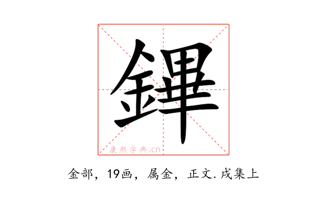 〔鏎〕字收录于《康熙字典》正文・戌集上,康熙部首是金部。