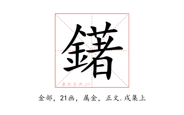 〔鐯〕字收录于《康熙字典》正文・戌集上,康熙部首是金部。