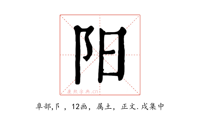 〔阳〕字收录于《康熙字典》正文・戌集中,康熙部首是阜部。