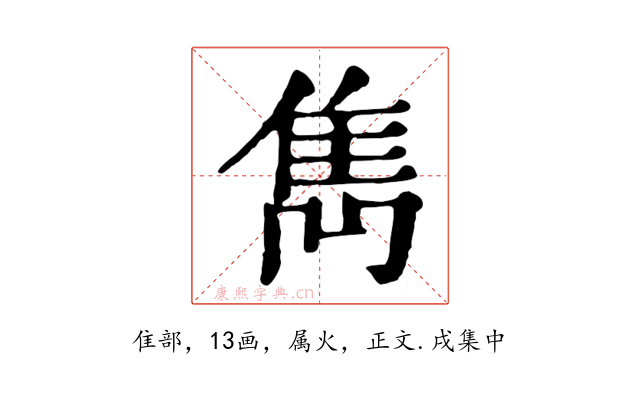 〔雋〕字收录于《康熙字典》正文・戌集中,康熙部首是隹部。