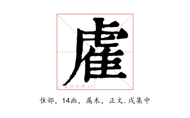 〔雐〕字拼音是hū,半包围结构,可拆字为虍、隹。