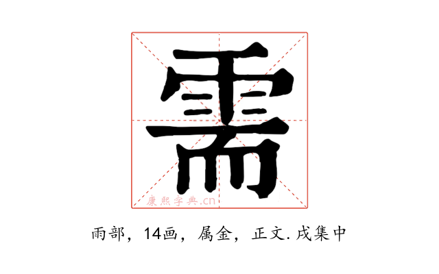 〔需〕字收录于《康熙字典》正文・戌集中,康熙部首是雨部。