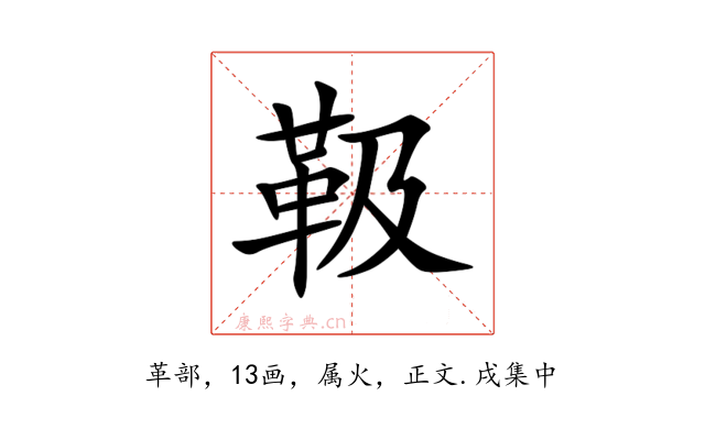〔靸〕字收录于《康熙字典》正文・戌集中,康熙部首是革部。
