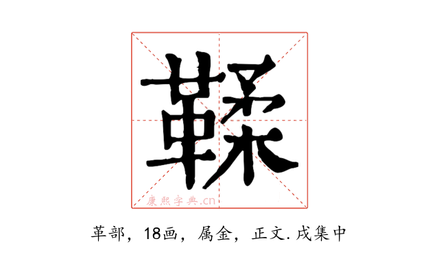 〔鞣〕字收录于《康熙字典》正文・戌集中,康熙部首是革部。