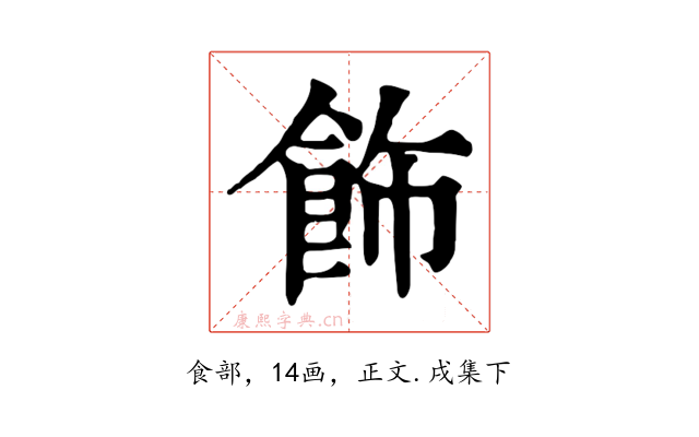 〔飾〕字收录于《康熙字典》正文・戌集下,康熙部首是食部
