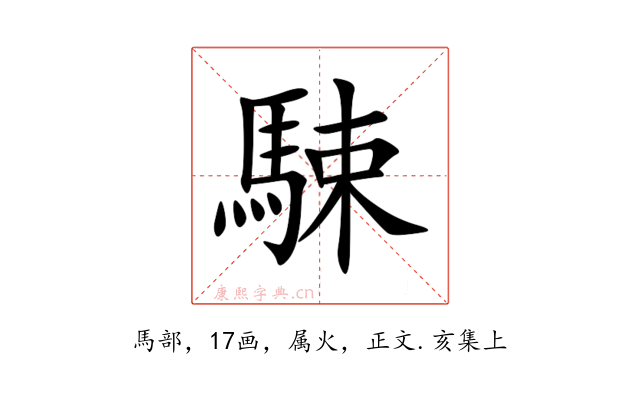 〔駷〕字收录于《康熙字典》正文・亥集上,康熙部首是馬部。