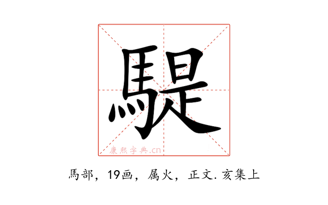 〔騠〕字收录于《康熙字典》正文・亥集上,康熙部首是馬部。