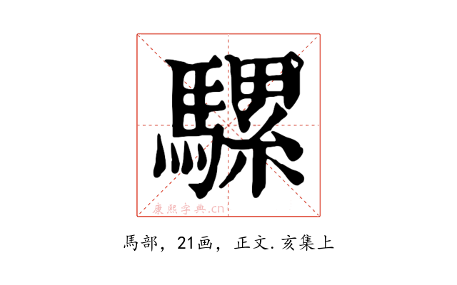 〔騾〕字收录于《康熙字典》正文・亥集上,康熙部首是馬部。