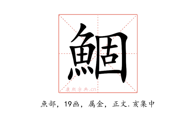 〔鯝〕字收录于《康熙字典》正文・亥集中,康熙部首是魚部。