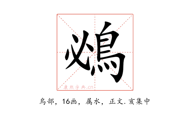 〔鴓〕字收录于《康熙字典》正文・亥集中,康熙部首是鳥部。