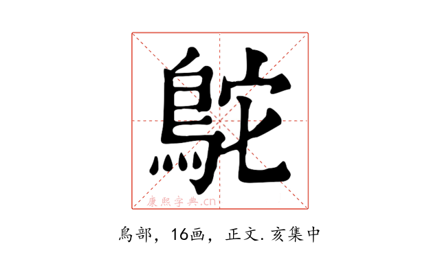 〔鴕〕字收录于《康熙字典》正文・亥集中,康熙部首是鳥部。