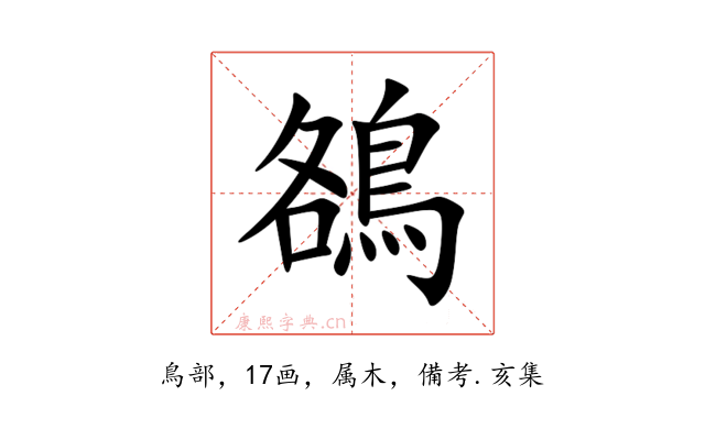 〔鵅〕字收录于《康熙字典》備考・亥集,康熙部首是鳥部。