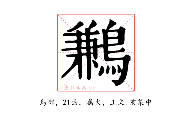 〔鶼〕字收录于《康熙字典》正文・亥集中,康熙部首是鳥部。