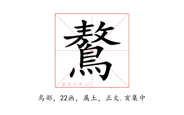 〔鷔〕字收录于《康熙字典》正文・亥集中,康熙部首是鳥部。