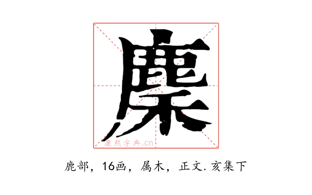 〔麇〕字收录于《康熙字典》正文・亥集下,康熙部首是鹿部。