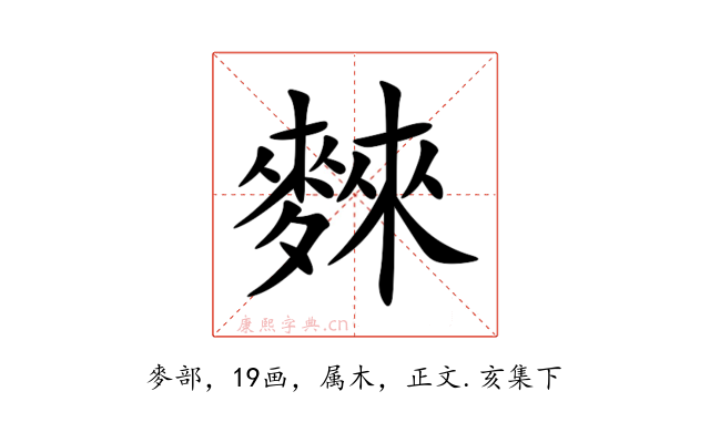 〔麳〕字收录于《康熙字典》正文・亥集下,康熙部首是麥部。