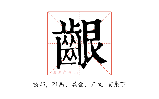 〔齦〕字收录于《康熙字典》正文・亥集下,康熙部首是齒部。