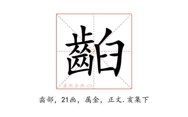 〔齨〕字收录于《康熙字典》正文・亥集下,康熙部首是齒部。