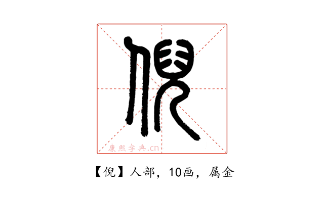 倪,裨益。字形采用“人”作边旁,采用“兒”作声旁。