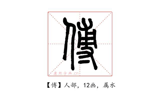 傅,辅佐。字形采用“人”作边旁,采用“尃”作声旁。
