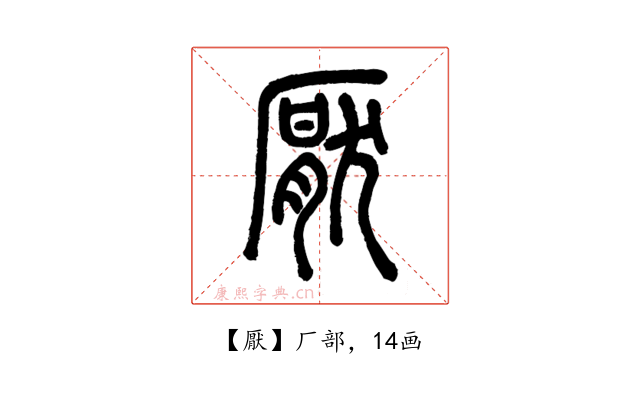 厭,压榨。字形采用“厂”作边旁,“猒”作声旁。一种说法认为“厭”是相合的意思。