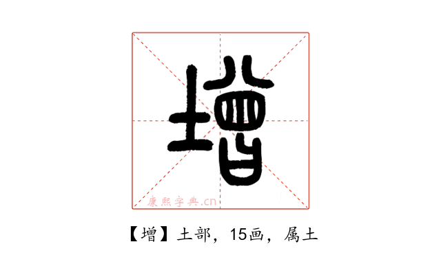 增,添加。字形采用“土”作边旁,“曾”是声旁。