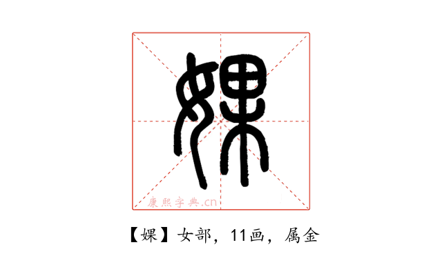 姽也。從女果聲。一曰果敢也。一曰:女侍曰婐。讀若騧。一曰若委。孟軻曰:「舜爲天子,二女婐。」