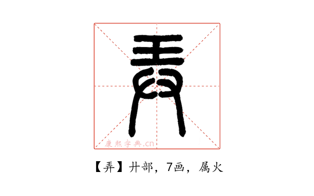 甲骨文字形從廾從玉。從廾,指雙手;從玉,指把玩的玉器。弄字指以雙手把玩玉器。從金文到楷書皆承甲骨文字形而來。在六書中屬於異文會意。